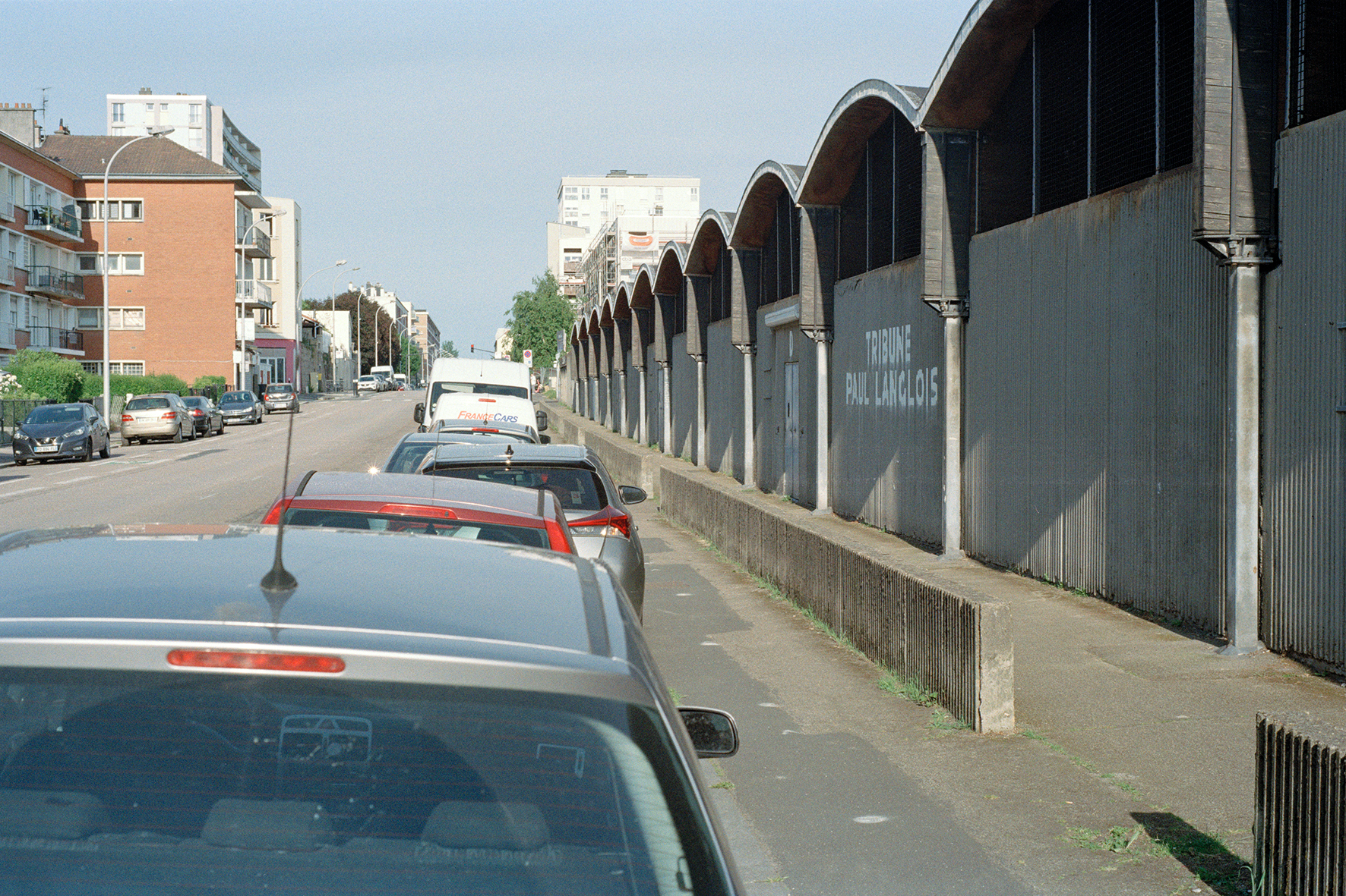 “Le Havre, ville de passage, ville portuaire, ville de la reconstruction. Simon Bouillère l’attrape au vol. Il repère un container, l’un des milliers de ceux qui passent par le port. Et tisse à partir de cet élément anonyme - emblème de la mondialisation et du commerce anonymisé - un trajet visuel pour nous amener jusqu’au cœur de Deschaseaux. (...) Il rencontre des passants, les photographie. Mais il passe à autre chose, car pour approcher ce sujet, ce ne sont pas forcément les visages humains qui le retiennent, contrairement à son habitude. Il s’éloigne pour explorer les quartiers résidentiels, ceux que le stade irrigue. Au milieu des habitants, il participait à un idéal de société que le sport incarnait, pensé comme bénéfique pour la santé et l’hygiène, mais aussi pour la mixité sociale.”